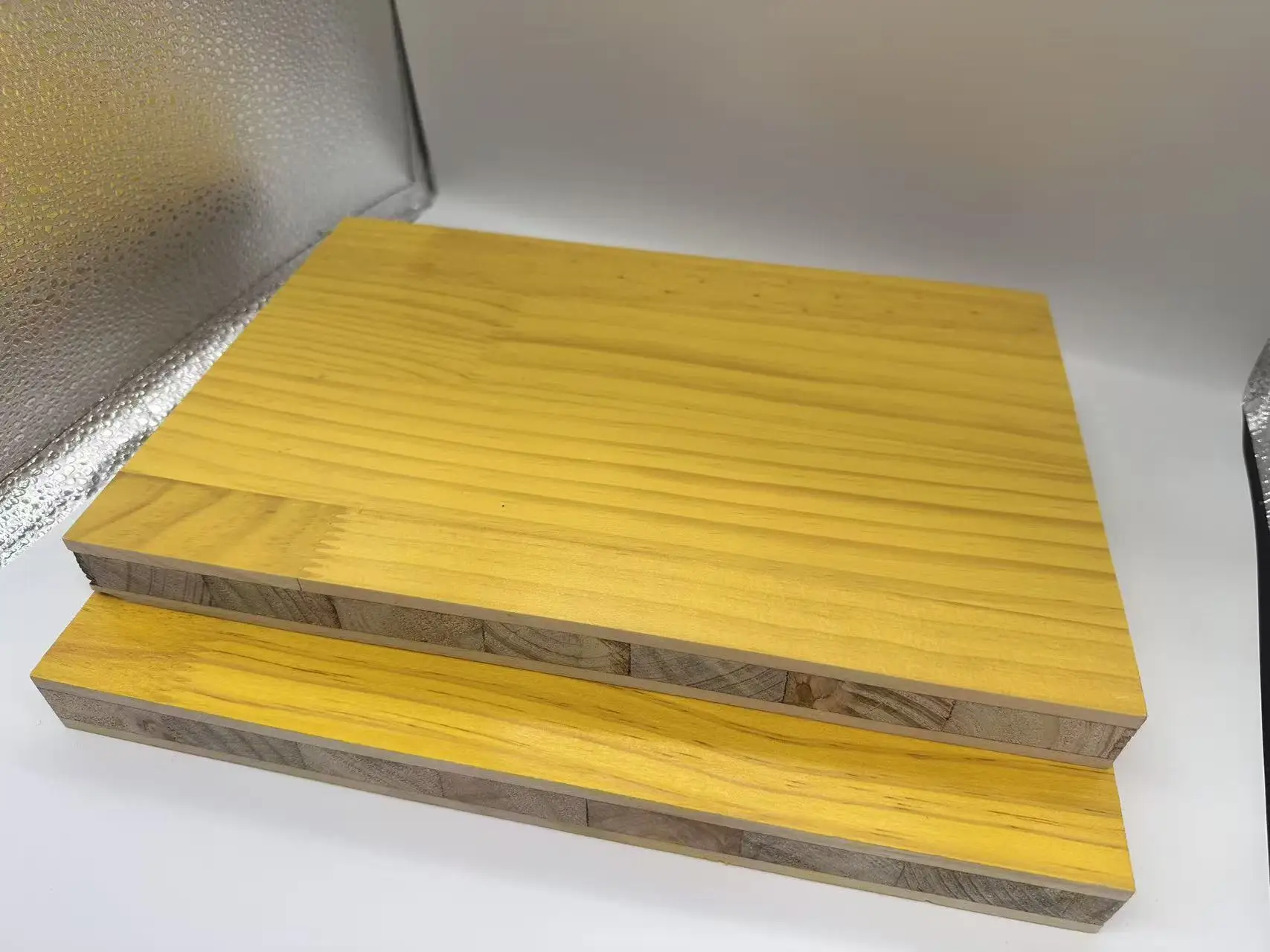 Bawat panel ay binuo gamit ang tatlong layer ng mahusay na kalidad na plywud na pinagsama sa ilalim ng kontroladong init at presyon upang matiyak ang dimensyonal na katatagan at paglaban sa pagkabaluktot. Ang makintab na dilaw na ibabaw ay may patong na nagpapabuti sa pag-alis, kaya ang kongkreto ay madaling nahuhulog nang malinis at nag-iwan ng malinaw at pare-parehong tekstura na nababawasan ang pangangailangan ng paggawa muli. Tumutulong din ang patong na ito na protektahan ang panel mula sa kahalumigmigan, pinalalawig ang buhay nito at binabawasan ang gastos sa kapalit